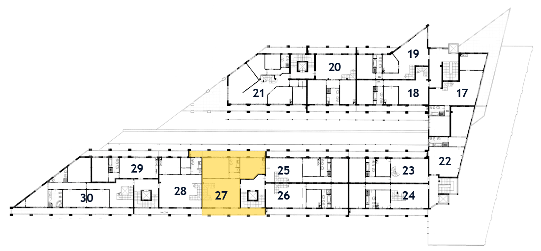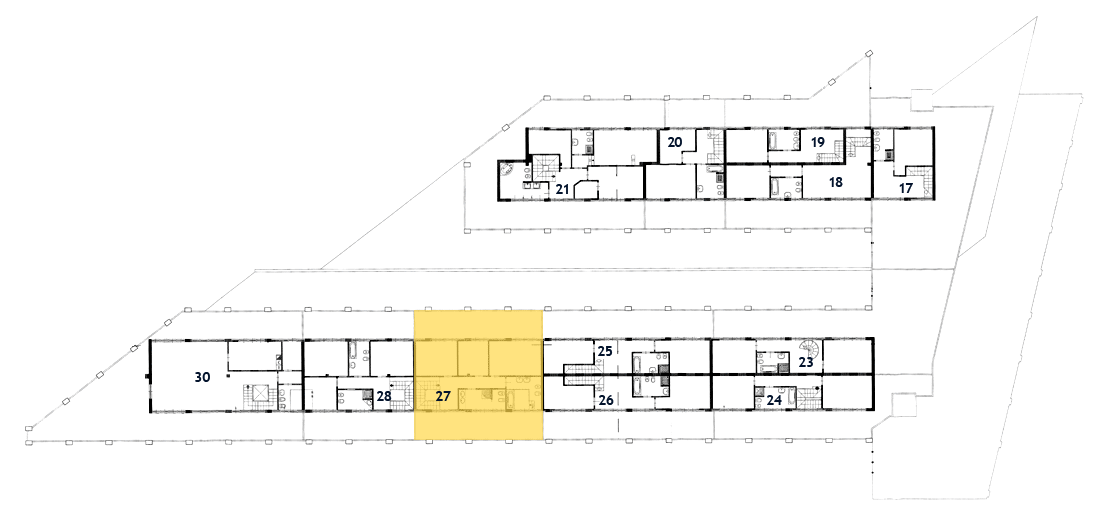 L’appartamento è costituito da un ampio soggiorno con un disimpegno che conduce alla cucina, ad un bagno e ad una camera da letto. Al piano soppalcato si trovano due bagni, due camere da letto e uno spogliatoio.
