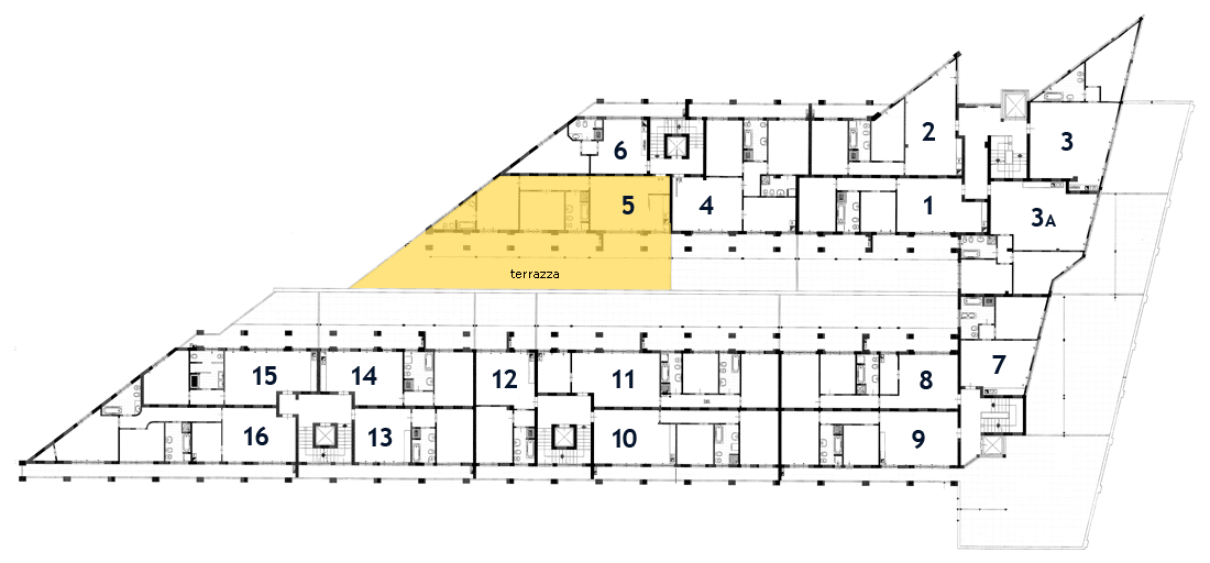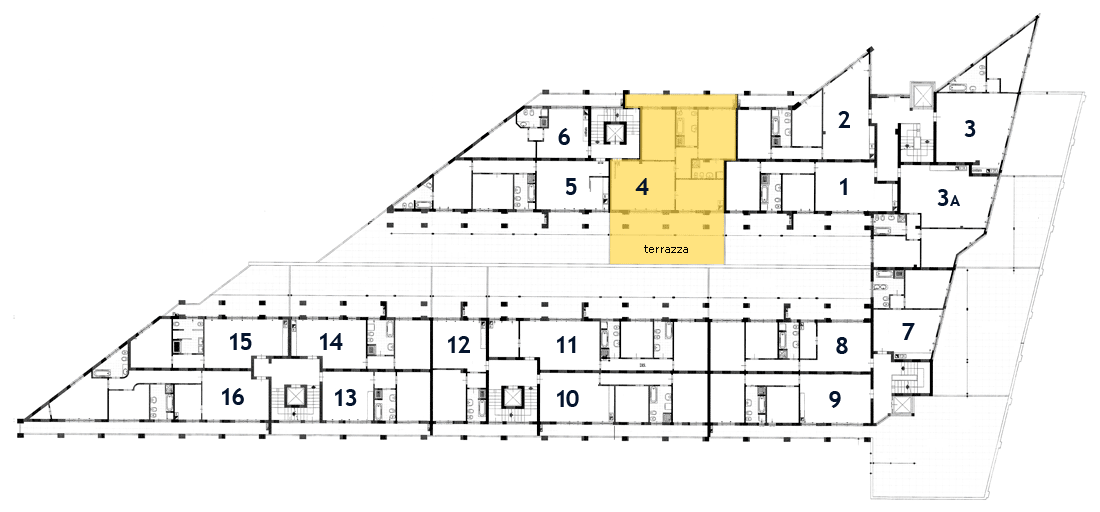 L’appartamento dispone inoltre di una grande terrazza che si affaccia sull’interno del complesso residenziale.