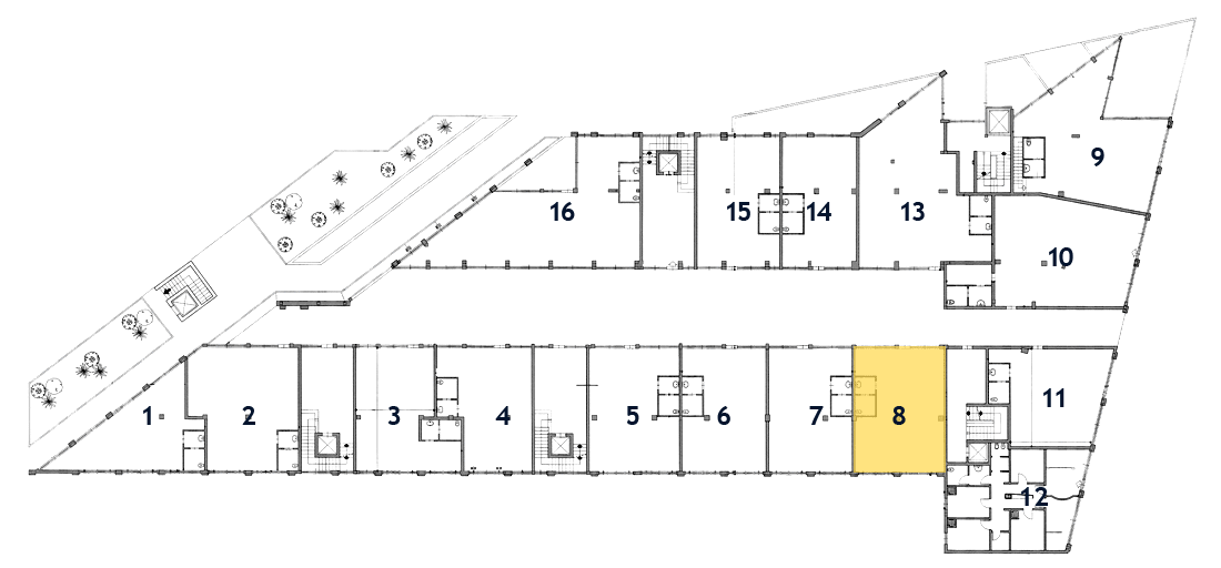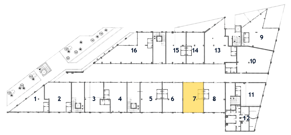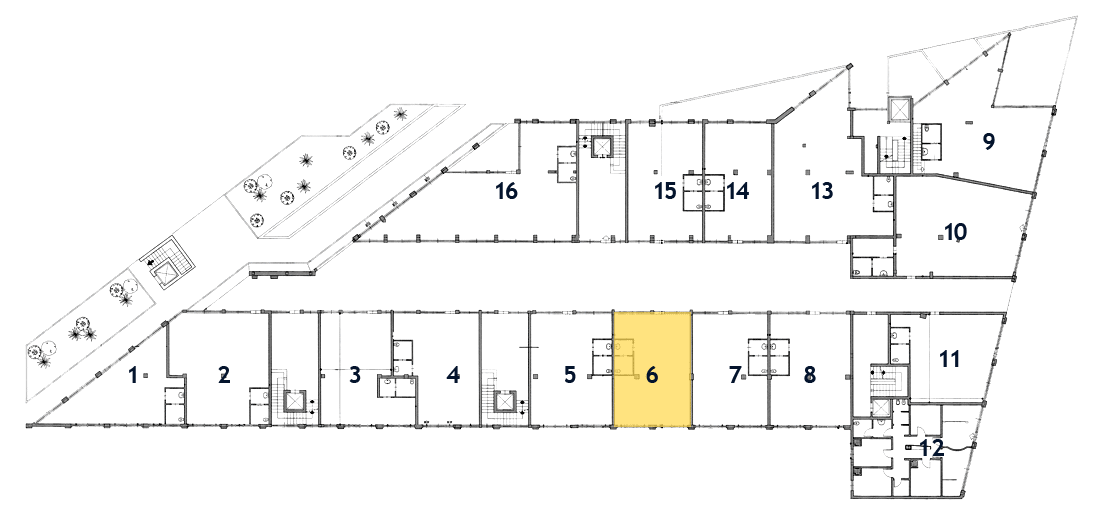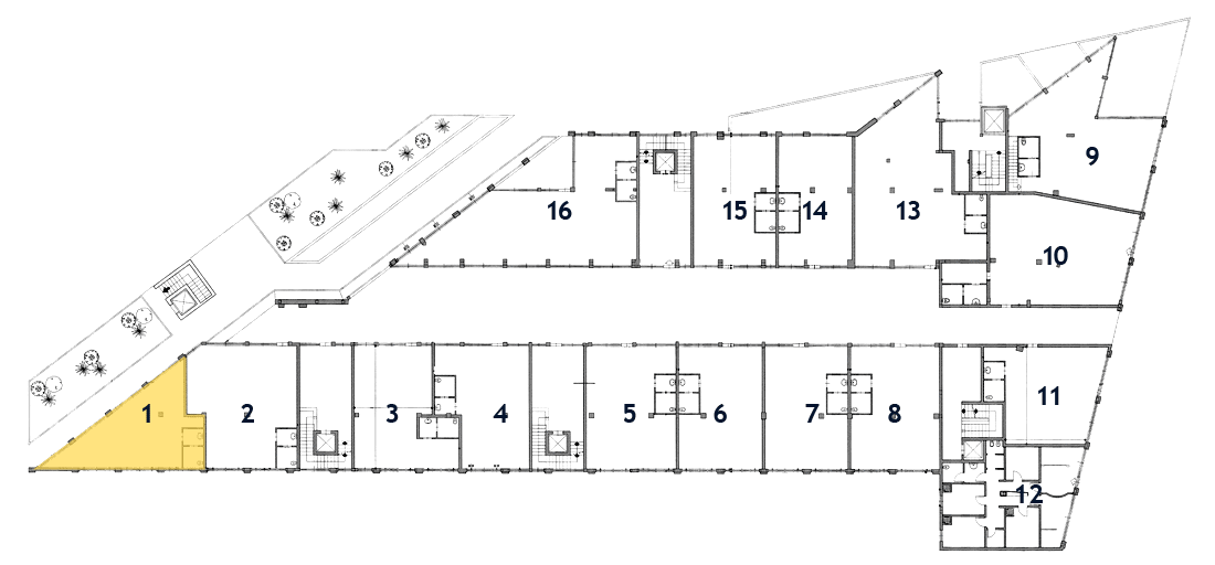 Il piano terra è riservato a spazi commerciali e direzionali, che si affacciano sulla galleria, importante punto di passaggio.